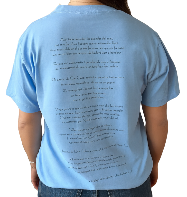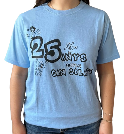 La samarreta dels 25 anys d’Esplai. M’emporto… 25 anys d’esplai! Talles: 5-6, 7-8, 9-11, 12-14, XS, S, M ,L, XL, XXL (fins a acabar existències)